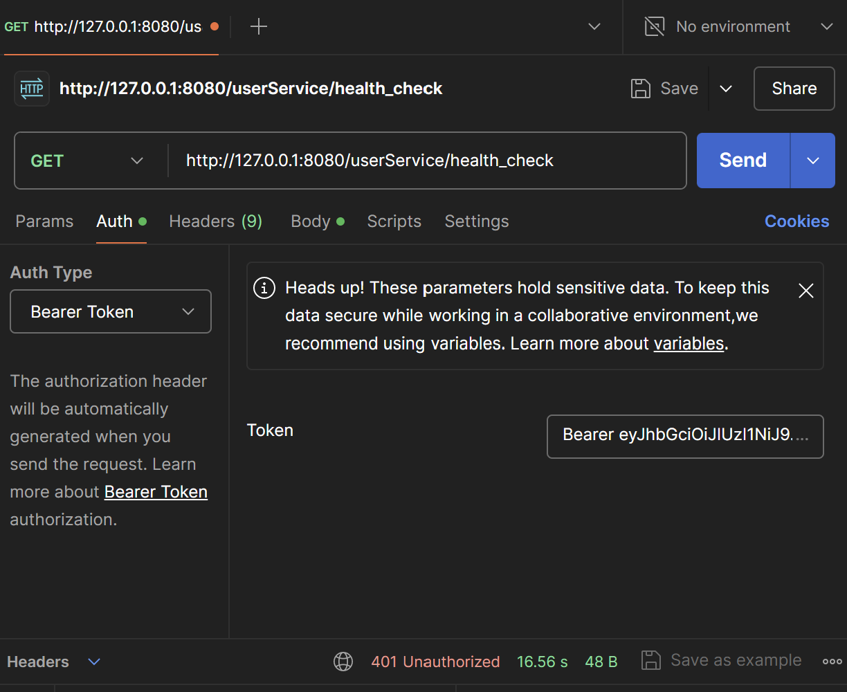- http://127.0.0.1:8080/userService/health_check 호출시 변경된 시크릿키가 반영되는데 이때 GatewayService에도 변경된 키가 반영되며 이로 인해 인증이 실패하면서 401 코드가 나온다.